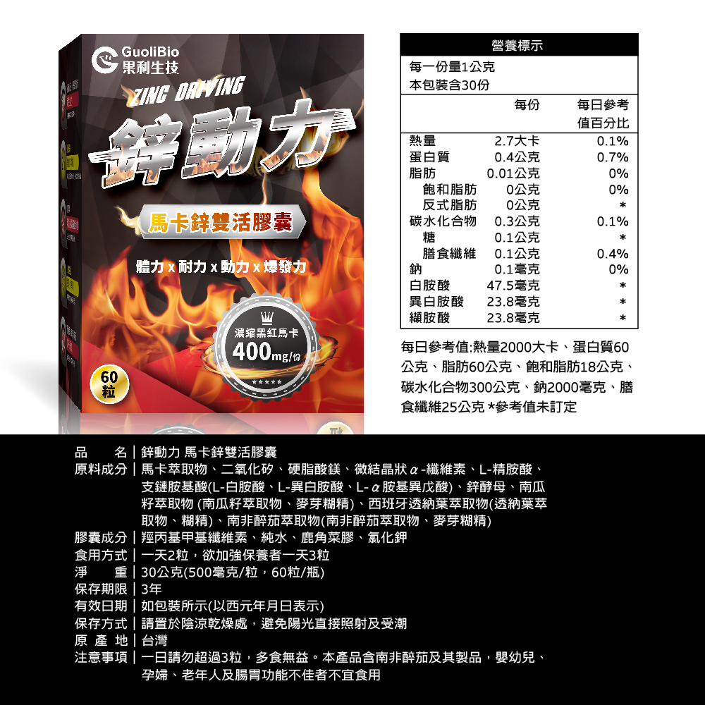 .【鋅動力】馬卡鋅雙活膠囊 (60顆/盒) x 1